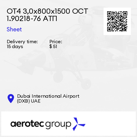 Sell spare part of the production ОТ4 3,0х800х1500 ОСТ 1.90218-76 АТП (Sheet). In stock 64. Year of manufacture – 19.06.2011. Price – $ 51.00